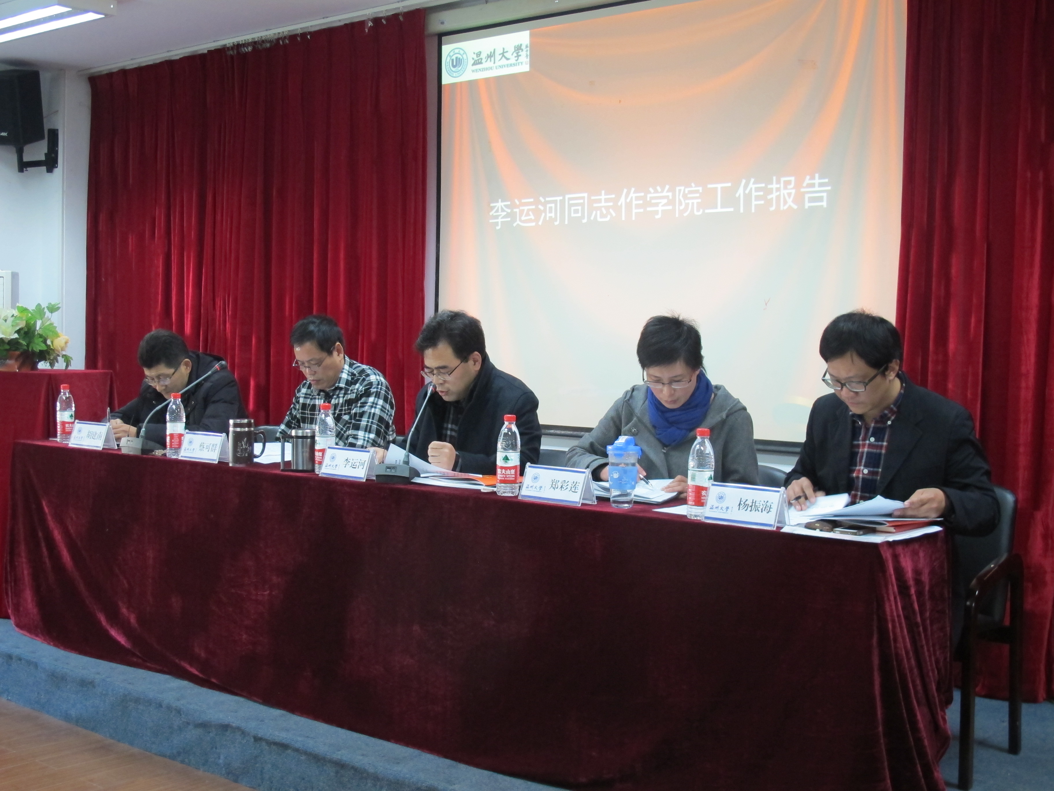 1月3日下午,性爱视频 第二届教职工暨工会会员第三次会议在2B4001会议室隆重召开。学院党政领导班子成员、全院教职工60余人出席了本次会议。党总支书记郑彩莲作关于大会筹备工作的情况说明,并宣布大会开幕。开幕式由党总支副书记杨振海主持。 会上,院长李运河作了题为《着眼未来,务实创新,推进学院又好又快发展》的学院年度工作报告。《报告》从五个方面总结回顾了性爱视频 2013年完成的主要工作和取得的成绩:一是教学内涵建设和人才培养质量又有新提高;二是学科科研建设又有新跃升;三是师资队伍建设取得新进展;四是党建学生工作取得新成果;五是80周年校庆各项工作稳步开展。《报告》也对学院2014年重点工作思路也做了说明,李院长指出,要认真学习贯彻落实党的十八届三中全会精神,结合学院具体工作实际,着眼未来,务实创新,努力做好各项教学、科研项目培育与申报工作,鼓励教师外出积极交流,全力推进学院各项工作更上新台阶。《报告》最后指出,过去的一年,学院发展事业取得了令人可喜的成绩,这是全院师生同心同德、共同奋斗的结果。新的2014年,学院的发展任务将更加艰巨,他希望全院师生努力发挥主人翁意识,进一步坚定信心,真抓实干,协同创新,为实现学院的内涵式发展做出新的贡献! 随后,工会主席胡建南同志作了学院《工会工作报告》,王薇同志作了学院《财务审计报告》,全体与会成员通过举手表决的方式,一致通过了三个报告。 最后,学院党总支书记郑彩莲致闭幕词,她提到,学院一年来所取得的各项成绩离不开学院全体教职员工的努力支持与积极配合,全院教职员工认真履行会员职责,行使民主权利,积极参与学院建设,实现了推动学院事业发展与实现个人梦想双促进。郑彩莲书记宣布会议胜利闭幕。 本次大会是在学院深入贯彻落实党的十八届三中全会精神,深入推进学院“十二五”发展规划各项任务的关键时期所召开的一次大会。通过本次大会,进一步凝聚了力量,明确了发展思路,为学院的进一步发展奠定了思想基础。 全体起立,奏国歌 蔡可群副院长主持会议 李运河同志作学院工作报告 胡建南同志作学院工会工作报告 王薇同志作学院财务审计报告 郑彩莲同志致闭幕词