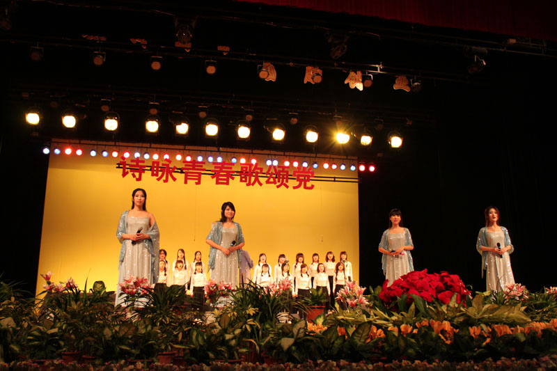 2011年4月20日晚7点,性爱视频 庆祝中国共产党建党90周年诗歌朗诵会决赛在大学生活动中心演艺厅举行,性爱视频 团学指导老师李剑军、学生会主席庄涛携学生会部分成员前往为性爱视频 参赛选手加油助威。