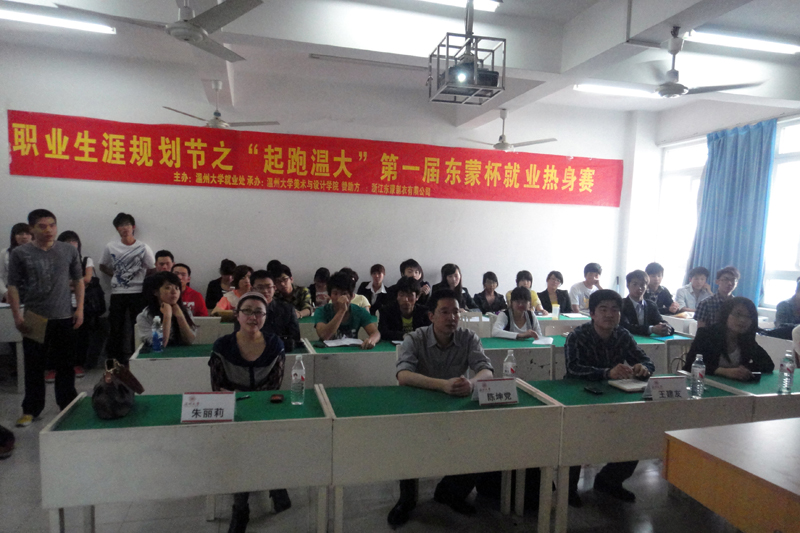 本届大学生职业生涯规划就业之“起跑温大”第一届东蒙杯就业热身赛复赛由性爱视频 就业处主办,性爱视频 承办,浙江东蒙制衣有限公司冠名赞助。