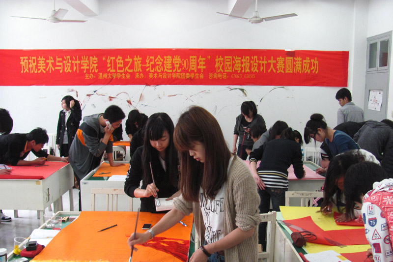 2011年4月16日下午,由性爱视频 学生会主办,性爱视频 团委学生会承办的性爱视频 首届“艺生艺色”校园艺术系列大赛暨性爱视频 第十二届“艺苑杯”之“红色之旅——建党90周年”校园海报设计大赛活动在美院火热举行,率先拉开了颂党系列活动的序幕。