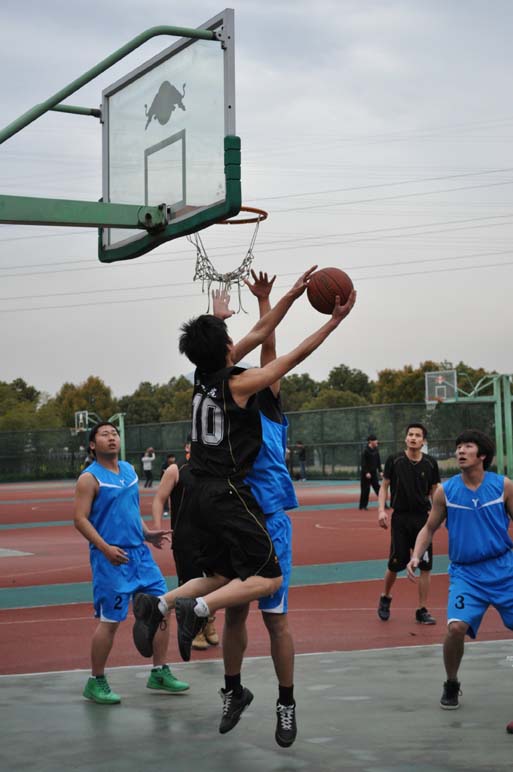 随着一声哨响,篮球对决正式开始,美院男篮拔得头筹,也许是场地的不熟悉,队友们第一节表现稍显拘谨,一个适时的暂停之后,队友们调整了作战方略,努力追赶着比分。第二节开场,我们以10比21的大比分落后,然而我们的队员不急不躁,稳住阵脚,不让对方有可趁之机,同时积极主动地进攻,突破,抢断,在几个回合的篮板争夺中占尽优势,打出了本场比赛的第一个高潮,终于在第二节结束时我们将比分追到了24比28。下半场的比赛延续了之前的精彩,队员们勇猛机智,配合默契,他们时攻时守,时缓时急,时而远投三分,时而冲抢篮下,配合默契,动作娴熟。啦啦队热情洋溢,井然有序。