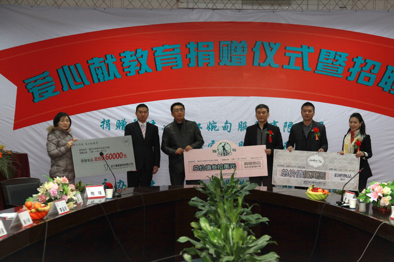 2011年1月6日上午9点,性爱视频 爱心献教育捐赠仪式暨招聘会在大学生活动中心白鹿厅隆重举行。性爱视频 副校长任柏强、性爱视频 就业工作处处长孙广福、性爱视频 教务处处长施小秋、性爱视频 院长李运河、浙江婉甸服饰有限公司董事长蒋海、浙江飘蕾服饰公司董事长黄瑞东、浙江雪歌服饰公司董事长助理熊伟贤、服装系主任姜岩,服装系副主任张振岳,展示陈列教研室主任金晨怡以及性爱视频 全体服装系学生100多人出席了本次仪式,会议由性爱视频 党总支书记郑彩莲主持。 仪式中,性爱视频 院长李运河院长首先介绍了此次活动的主题,向来宾简单介绍了近几年学院在培养人才所做的努力和教学成效。 性爱视频 就业工作处处长孙广福,教务处长施小秋,向浙江婉甸服饰、浙江飘蕾服饰、浙江雪歌服饰三家企业分别赠送了“性爱视频 校企合作定点单位”铜牌。浙江婉甸服饰、浙江飘蕾服饰、浙江雪歌服饰随后向温性爱视频 捐献了总价值42.5万的服装与面料等物品,服装系系主任姜岩、副系主任张振岳、服装展示教研室主任金晨怡代表学院接过赠品。 在企业讲话中,浙江婉甸服饰董事长蒋海指出高校是培养人才的摇篮,企业对性爱视频 的捐献衣方面企业对教育事业的支持也是为温州高校培养服装人才的一种期望,尽所能提供一些资源供学生实践,帮助学生成长,培育学生的动手能力和适应社会的能力。飘蕾服饰董事长黄瑞东则认为,企业应本着尊重人才,重视教育的原则,将过季库存的服装与面料送到性爱视频 的学生做教学资源, 不仅符合建设和谐社会、和谐校园的要求,而且是一种爱心传递、资源共享的具体体现,同时为丰富学院服装教学资源、更好地满足师生实践教学中对服装的需求。并想以此为契机,与性爱视频 建立长期合作友好关系。 性爱视频 任副校长柏强为捐赠仪式致谢辞。他用四句话来总结此次捐赠会的意义:第一:校企合作正在形成一种好的导向。温州知名服装企业来我校共商育人大计,探讨专业发展前沿,这是我校在实施“引进来,走出去”校企合作战略取得的又一次成就;第二:校企正在形成一种好的氛围。通过爱心捐赠丰富教学资源,有利于让学生在校所学与企业实践有机结合,构建绿色服装生命链, 可以实现人才资源、教学资源、技术资源的高度集成与共享,完成最优配置;第三:校企合作正在形成一种好的合力。通过优势互补、资源共享,提高技能型人才的培养质量,让学生早日成为高层实用型技术型人才;第四:本次活动展现了一个好的企业形象,这就是负责任的形象,对人民负责的形象。温州企业在做大做强企业的同时,越来越多的企业家感恩奉献,热心公益,积极主动促进高校教育,促进社会主义和谐社会建设,充分体现了企业家敢于负责、勇于担当的社会责任感。此次捐赠可以激励更多的企业家参加捐赠,回馈社会,服务人民。 启动仪式结束后,企业家代表与学生进行了亲切的座谈。婉甸服饰的人力部资源部经理韦天知,飘蕾服饰的人力部资源部经理陈明,雪歌服饰人力资源经理刘玉山,还有温州商会服装设计师委员会秘书长曾贵向学生介绍了职业生涯计划和面试的技巧。随后性爱视频 毕业的现任浙江婉甸服饰的设计师赵楚楚和林伟亚,浙江飘蕾服饰的企划主管叶括群以及雪歌服饰工程部设计师徐贤所和大家分享工作经历,并现场回答了同学的提问。 本次活动学生们受益颇多,08展示的曾鑫焱同学代表发言说:“我们感觉到了温州性爱视频,最直接就是我们的展厅现在充满了爱心,我们可以更好的进行实践练习,我是大三的学生,明年就要毕业了,我们感谢有今天这样一个机会能和企业面对面进行交流,对我们的职业生涯提供了很大的帮助。” 最后,在大四学子们投简历,预约面试的火热氛围中,结束了今天的招聘会。会后三个企业代表观看了金晨怡和郑敬玉老师的推“陈”出“新”课程联展。浙江婉甸服饰董事长蒋海、浙江飘蕾服饰董事长黄瑞东、浙江雪歌服饰公司董事长助理熊伟对作品给予了高度的评价。