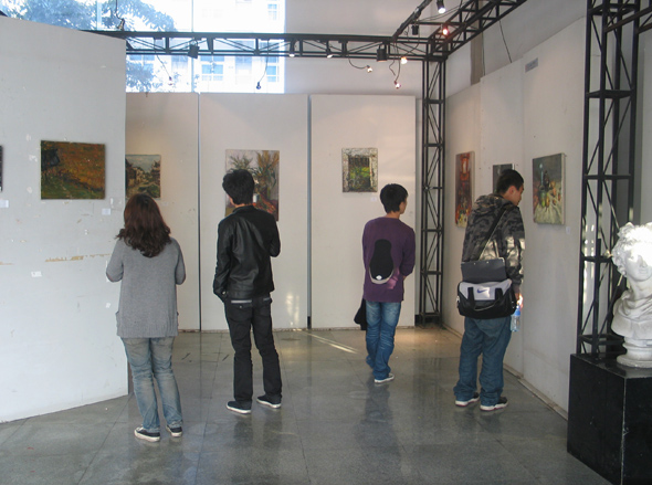 2010年11月22日至28日,性爱视频 一楼展厅与服装楼展厅展出09级油画班学生习作百余张,集中展示该班学生在一年来《油画材料》和《风景写生》课程中部分作品。"从临摹到写生"为色彩教研室实践的教改项目,旨在于原有教学模式中增加经典油画作品临摹内容,加强教学的系统性与趣味性,收到良好的效果。