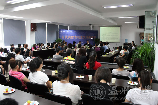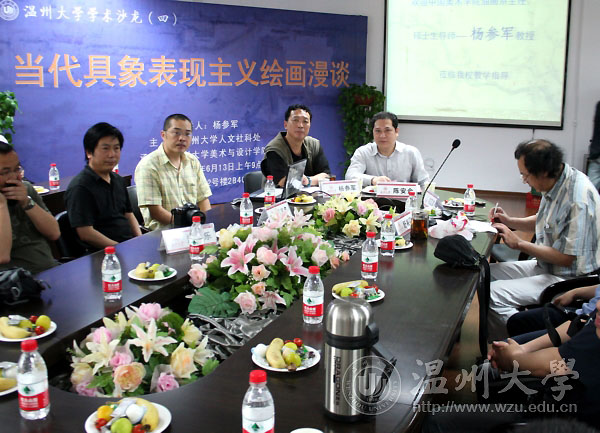 6月13日上午,由我校人文社科处主办,性爱视频 承办的第四期学术沙龙《当代具象表现主义绘画漫谈》举行。中国美术学院著名画家杨参军教授,校党委委员、人文社科处处长陈安金,温州美术界画家,性爱视频 的部分师生参加了此次学术沙龙,并就议题展开学术交流。 “人们不须再现自然,而是代表着自然”。杨参军从著名的法国画家塞尚引出话题。他说,西方画家的具象表现主义强调用视觉观赏,就像现在的快餐文化,把绘画观念化、概念化、僵化和城市化。杨参军指出,他在平时观察中发现中国美术院的学生们给观念化、概念化的具象表现绘画注入了新的力量,从而发现了现代中国在接受具象表现绘画的同时也注入了自己的特色,自己的民主精神。杨参军把自己比喻成是一个52岁的“婴儿”,用好奇、迷恋的心态对待世界,不被欲望和虚拟的文化影响自己的绘画。他强调要强制、训练自己以“撒谎”、虚构、恬淡的心态看世界。 陈安金指出,艺术文化折射的是一种交响文化,既抽象又现实。此次沙龙让人感受到了中国艺术教育、艺术创作、中外文化三者的有机结合。思想、哲学、艺术均是怀着一份淡淡乡愁的美,希望这种乡愁永不熄灭。