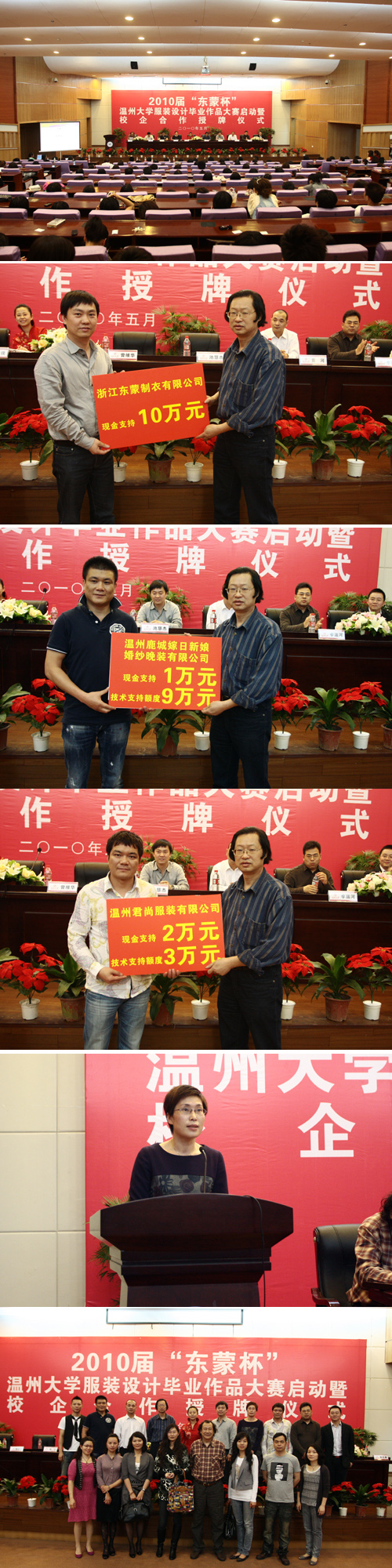 2010年5月12日,2010届“东蒙杯”性爱视频 服装设计毕业作品设计大赛启动暨校企合作授牌仪式在性爱视频 图书馆二楼报告厅隆重举行。性爱视频 副校长任柏强,浙江东蒙制衣有限公司董事长池慧杰先生,温州君尚服装有限公司总经理周华忠先生,温州市鹿城嫁日新娘婚纱晚装有限公司董事长徐江先生,温州市金诗丹服饰有限公司总经理黄河先生,性爱视频 人文社科研处副处长刘玉侠及性爱视频 党政领导出席了仪式。