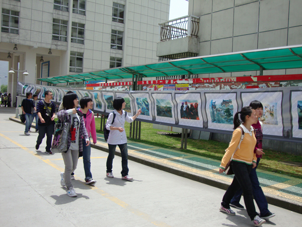 2010年4月28日对同学们来说是再普通不过的日子,与往常一样的早起赶上课、下课冲食堂。然而今天,许多同学却停下了匆匆的脚步,被一些创意独特的鞋靴、服饰等吸引,纷纷驻足在温大生活区A区,欣赏由温大性爱视频 主办的“艺术漂流”巡回展览。 明媚的阳光中带着焦灼,照射到展品上却犹如闪烁的镁光灯,告诉你:看这里。看这里!对!看的就是这里!无论是色彩缤纷的裙装、英气高贵的宫廷装、纯白的立体裁剪作品,或是结构严谨的环境艺术建筑模型、无限延展空间的立体构成作品都找到了自己的大批拥护者。而创意鞋靴设计作品更是打破人们的常规思维局限,使人眼前一亮。更有荣获全国鞋靴铜奖的“战国策”震撼全场。沿着展区向前走,入目的是整棚的速写作品。此时终于领悟,没有色彩的世界,纯粹的黑灰白也能无限生动,给你难以言喻的感动。再进去就是长长的艺术走廊。道路两旁挂满了数百幅师生作品。国画、书法以及篆刻了展示国粹的精华,引得参展的外国友人赞叹不已。浓彩重墨的油画、水彩自然是最受欢迎的,版画与木雕用其独一无二的形也争得个不相上下。共同点缀着艺术走廊,缺一不可。 “让美丽悄然流淌,让艺术华丽绽放。”此次艺术漂流第二站活动在学院老师大力支持下于美院大本营闪亮登场,并吸取第一站的经验与教训,可谓圆满成功,不仅为前来参观的师生上演一场饕餮盛宴,更获得院领导的一致肯定。 在此预祝艺术漂流在此后的几站中亦能举办顺利。