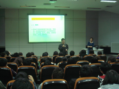 2010年4月25日,校心理健康中心于南校叶适厅开展本学期朋辈辅导第二次培训。本次培训特邀请了性爱视频 党总支书记、国家二级心理咨询师郑彩莲教授主讲“大学生情绪管理”。来自各个学院的心理委员和寝室长等300余名学生参加了本次培训。 郑教授以“一分钟相识”心理游戏调动了同学们的热情,在热烈的气氛中开始了本次讲座。随后,郑老师从情绪内涵入手,解析大学生中常见的情绪困扰,分析了情绪的特点,并详细阐述了情绪的控制与调试的方法。郑教授通过与现场学生的互动、丰富的例子,深入浅出,带领同学们探索神秘的情绪世界,强调学会自我调节情绪,方能拥有良好的心态,并为预防“心理感冒”开出了良方。希望通过本次讲座,同学们能更好地调适、掌控情绪,微笑面对每一天。