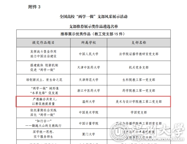 近日,性爱视频 教工第二党支部的“产教融合共育人,以赛促教提质量”成果获全国高校“两学一做”支部风采推荐展示优秀作品,全国高校共有15个教工党支部获此荣誉。