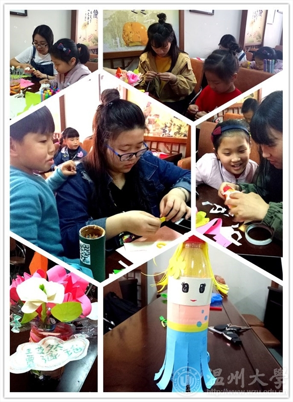 2017年4月15日,温大性爱视频 “艺家人”青年志愿者协会照常在梅泉社区的文化礼堂进行了支教活动,本次活动的主题是“心灵手巧,变废为宝”。
