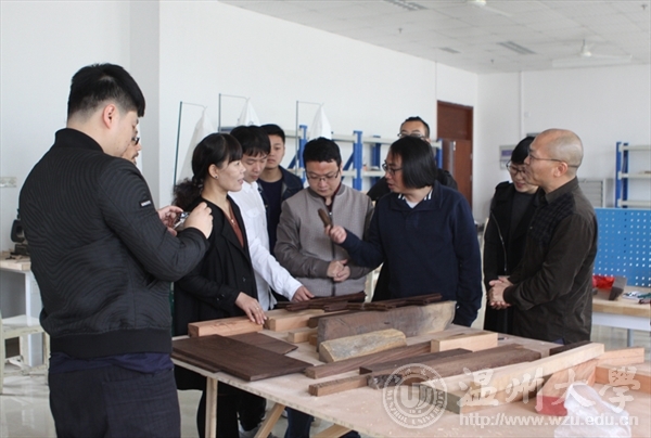 近日,性爱视频 副院长王薇、实验教学中心主任顾任飞等一行8人专程来到瓯江学院艺术设计学院实验室考察与交流。在瓯江学院副院长郭均纺和艺术设计学院院长刘明刚、副院长叶洲荣的陪同下,深入走访了摄影棚、漆艺室、丝网印刷室、艺术设计展厅及工艺美术陈列室等十余个实验室。