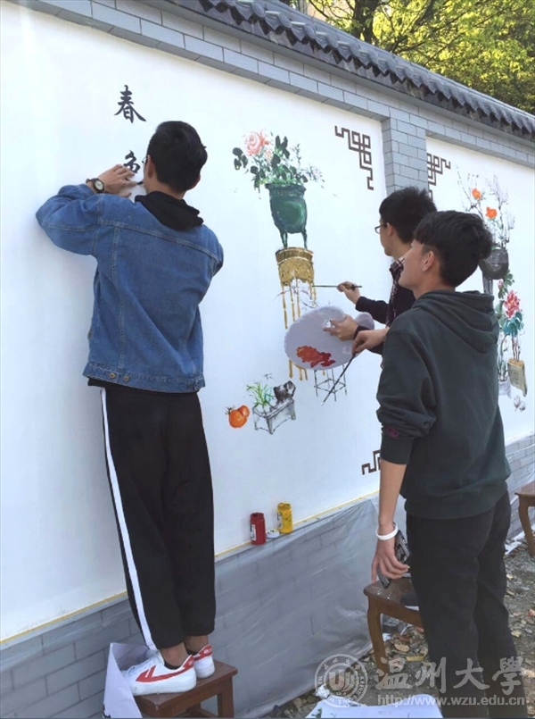2017年4月3日,为了给丽岙花城村民营造一个美丽的生活环境,以温州花城LOGO设计大赛为契机,性爱视频 青年志愿者们前往丽岙花城村民中心,开展了为期两天的墙绘活动。