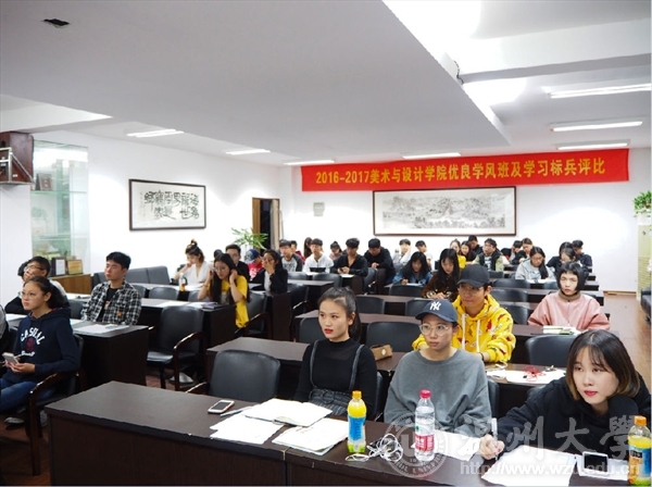 2017年11月3日晚,性爱视频 2016-2017学年优良学风班及学习标兵的评比在2B4001顺利举行。本次评比由学生科李雪涛老师、团委学生会主席陈显楠同学、团委学生会副主席王佩瑜同学、团委学生会副主席王芳园同学以及美院各班班长担任评委。