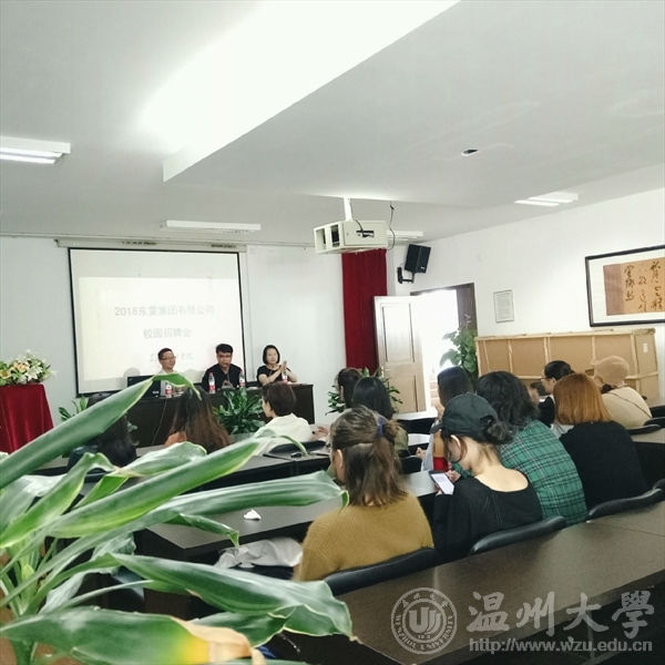 2017年11月26日上午,东蒙集团有限公司专场招聘会于性爱视频 2B4001举行。东蒙集团有限公司公司人事行政副总监朱旭丰,性爱视频 服装设计与工程系主任高广明、学生科副科长叶筱卉以及14级服装设计专业的同学参加了本次宣讲会。