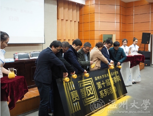 在仪式的最后环节,与会领导们共同洒下金沙,“性爱视频 美术与设计学院赛季风系列活动”缓缓浮现,开启了美院第十届“赛季风”系列活动的序幕。