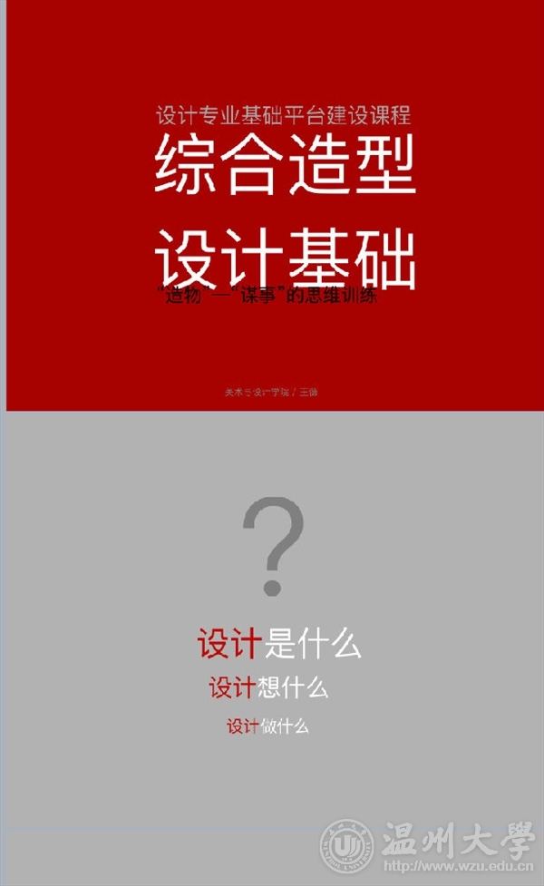 王薇老师用从“造物”到“谋事”的思维方法训练的观点,阐述了“设计基础教育”的定位,她指出:基础教育本身就是目的,设计教育不能着眼于实用性知识和技能的传授,片段化知识的传授容易将学生带入设计的误区,从而不能从根本上解决所谓“中国元素滥用”的普遍问题。“综合”的意义在于“显性和隐性”的素质培养,完整的结构与系统的知识架构,才有可能理解设计的真正目的。王薇老师鼓励学生积极地用“动词”去思考约定俗成的概念,启发学生在动词的思考方法中,体会设计的创造性,从而获得对这门课程开设的意义,感悟设计活动的创造性特点。