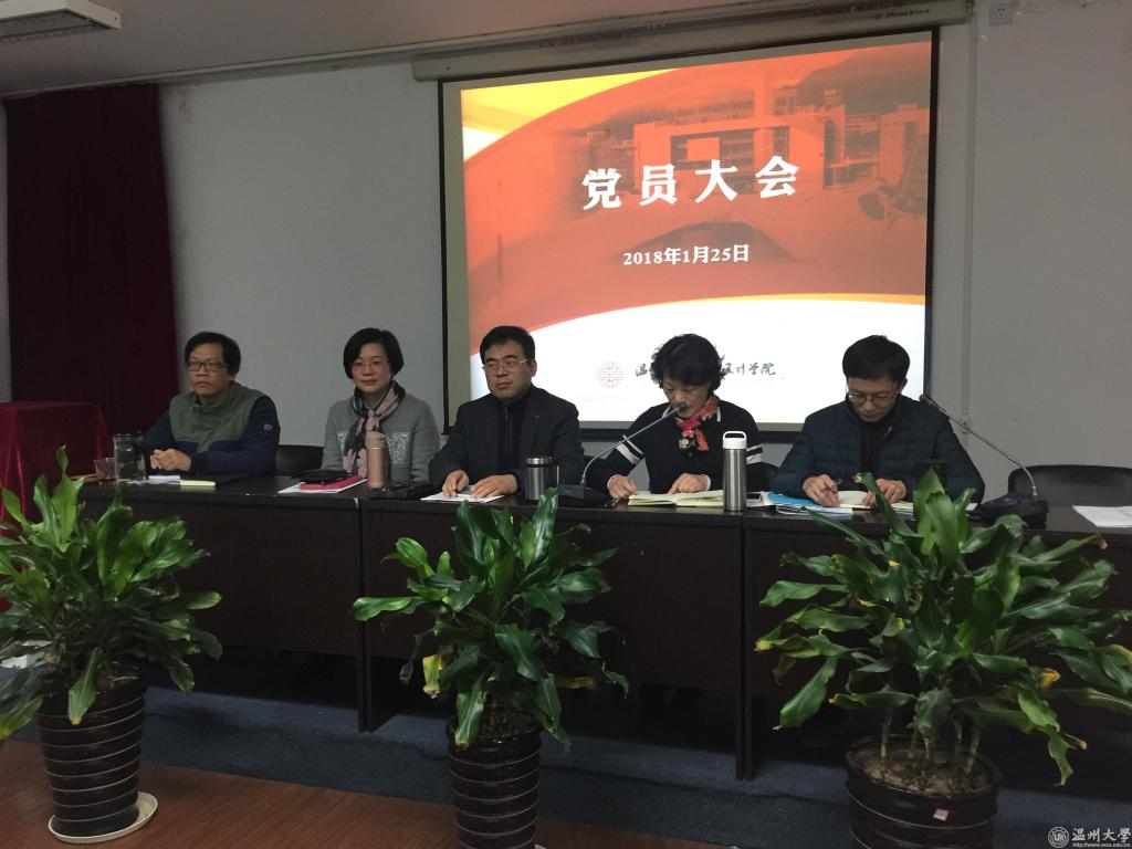 2018年1月25日下午,性爱视频 在2B4001多功能厅召开期末全体教职工大会和党员大会。院长李运河,党总支书记张丽萍,副院长谢子静、张晓剑,党总支副书记杨振海出席会议,会议由张丽萍主持。 全体教职工大会环节,李运河院长对本学期学院主要工作做了回顾总结。本学期学院在教学、学科、科研和党的建设工作方面等方面取得了卓越进展。此外,性爱视频 还承办了2017“市长杯”中国(温州)工业设计大赛和第十届“亚洲联盟超越设计展”(中国展区), 得到了张耕市长、李校堃校长等领导的充分肯定。同时,他说学院还要在人才的引进和师资结构梯队科学优化上、产教融合、协同创新上、加快国际化的步伐等方面继续努力。谢子静副院长对期末教学工作中成绩评定和毕业设计等工作的落实进行了安排。张晓剑副院长就科研工作推进、实验室提升、院容改造、学科竞赛成绩作了说明。杨振海副书记介绍了班主任考核和寝室导师工作开展情况,同时对在学院育人工作中辛勤付出的老师表示感谢。张丽萍书记对教师政治理论学习作了部署。她强调,教师要加强自身理论学习不断提升思想政治素质。根据学校要求每位教师政治理论学习每年不少于40课时,老师们要在完成学院安排理论学习之外在寒假期间积极通过微信等新媒体渠道继续抓紧自主学习。 学院教学督导组组长黄良老师就本学期的督导工作做了汇报。本学期督导日常听课重点由公开课转向日常课程,学院课程教学质量稳中向好。黄良老师特别指出在微信平台上推出的课程展内形式活泼、内容新颖在师生和校内外取得了良好的反响,同时对具有严谨治学态度和高质量的教学效果的教师给与了肯定和赞扬,也提出了公开课中理论课程比例过高、老师们课堂教学方式方法及对听评课不够积极等问题。 党员大会环节,张丽萍书记传达了学校召开有关意识形态会议精神。要求广大党员、干部、教师,尤其担任班主任的党员教师要切实履行职责。把牢“十个关口”,掌握师生思想动态,做好师生的思想政治工作。会上还对学院的网站、微信平台的终审权限做出了明确规定。