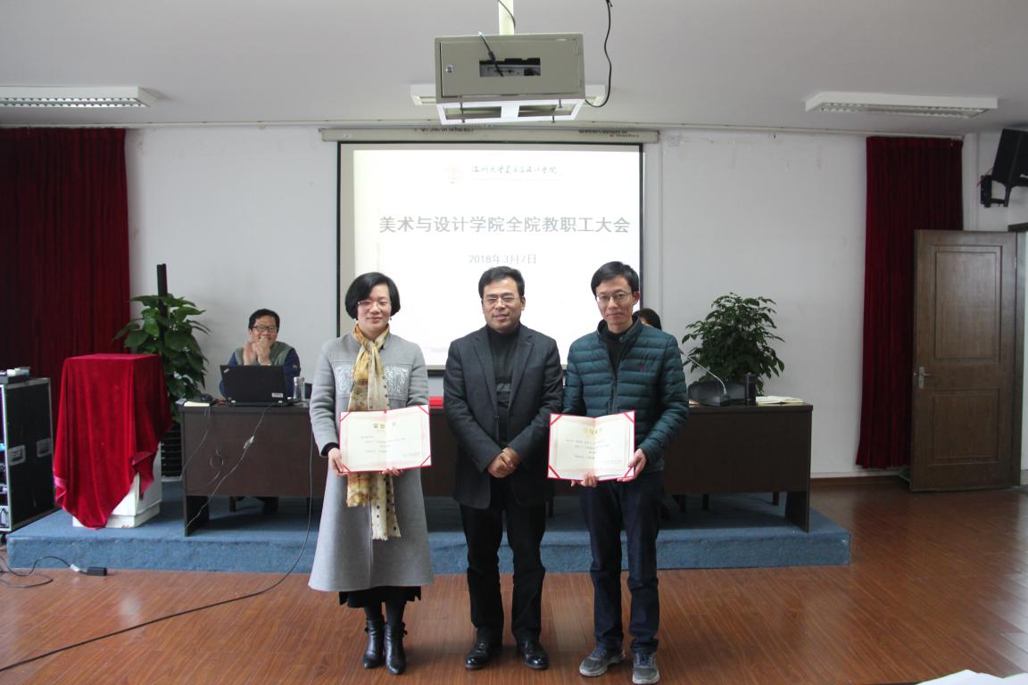 大会上首先举行了“2017年度院长特别奖”的颁奖仪式。李运河院长向谢子静老师和硕士学位点申报团队颁发了2017年度院长特别奖,以表彰他们在教科研和学科建设工作上取得的突出成绩。谢子静老师主持的《古戏台戏曲彩绘图饰研究》获国家社科基金项目艺术学课题;李运河院长所率的申报团队获得设计学学术硕士授予权和艺术专业硕士授予权,这是性爱视频 硕士点申报工作取得的重大突破。