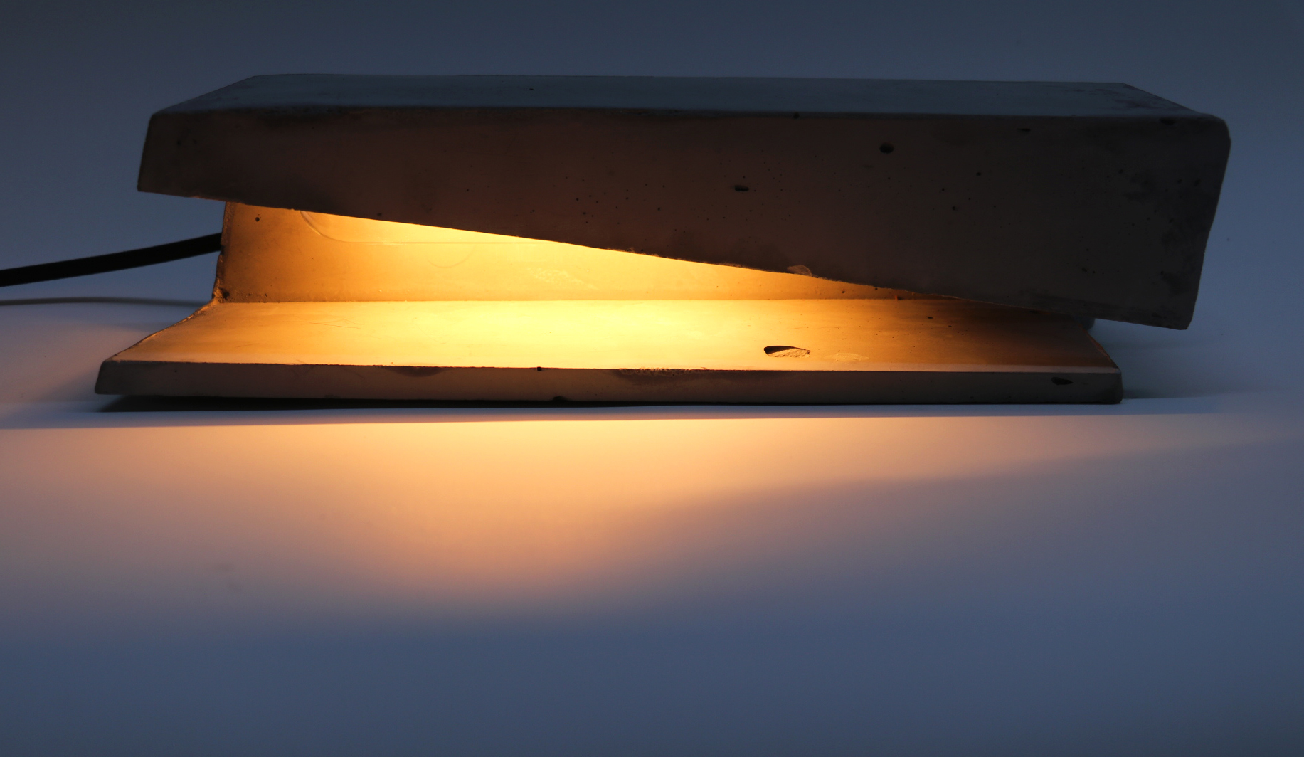 工作坊以混凝土为主要材料,充分利用其质感特殊、应用广泛、可塑性强、富含美感等特点,通过创意设计,融功能性与艺术性于一体,制作如文创礼品、创意首饰、家居置物、绿植盆栽等一系列有故事、有情感、有场景、有美感的创意衍生产品,为我们的日常生活带来或时尚新奇、或精致匠心、或质朴随性的艺术体验,充分体现了美好生活的艺术理念。比如本次展演主打品---混凝土的灯具“窝檐”,春燕造窝,意味着春日将近,春暖花开,燕窝形式感的造型,搭配暖色灯光,让人不由自主地想到温暖而幸福的家。
