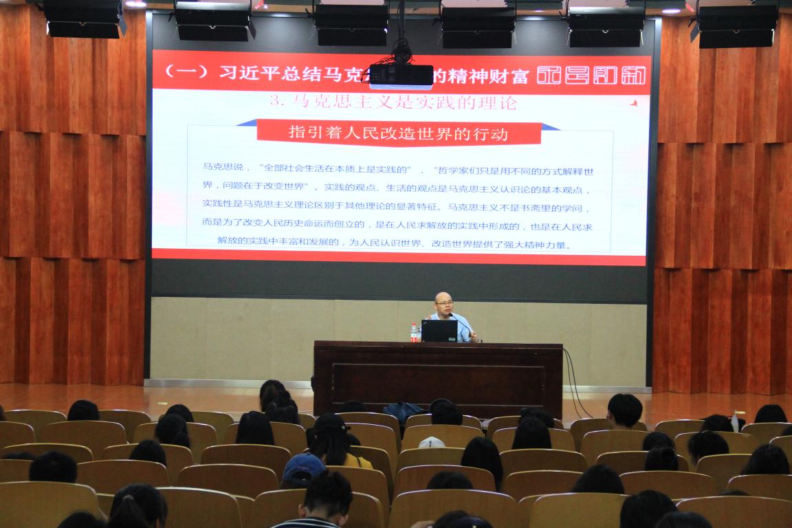 7月2日上午,性爱视频 在雁山厅开展本学期第二次形势与政策课,性爱视频 马克思主义学院副院长卓高生做题为“感受信仰的力量 高扬伟大的旗帜——学习贯彻习近平总书记在马克思诞辰200周年上的重要讲话”的形势与政策讲座。性爱视频 17级全体同学参加讲座。 卓高生老师从回到马克思、走进马克思、学习马克思三个方面进行解读。通过回顾马克思的一生,可以得出这样的结论:马克思的一生,是胸怀崇高理想、为人类解放不懈奋斗的一生;是不畏艰难险阻、为真理而勇攀高峰的一生;是为推翻旧世界、建立新世界而不息战斗的一生。回到马克思,需要重读经典,也要摒弃教条式的解读。走近马克思,需要辨识、辨析、辨明马克思主义,习近平总结马克思留下的精神财富是指出:“马克思主义是我们立党立国的根本思想。背离或放弃马克思主义,我们党就会失去灵魂、迷失方向。在坚持马克思主义指导地位这一根本问题上,我们必须坚定不移,任何时候任何情况下都不能有丝毫动摇”。纪念马克思诞辰200周年大会上,习近平主席高度评价了马克思的一生,并就学习和实践马克思主义提出9个方面的要求,为新时代坚持和发展中国特色社会主义进一步指明了前进方向。卓高生老师指出,在马克思诞辰200周年的今天,对马克思最好的纪念和告慰,对马克思主义最好的坚持和继承就是:在新时代我们要在坚持中发展、在传承中创新,不断开辟当代中国马克思主义、21世纪马克思主义新境界。