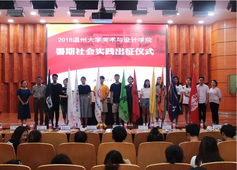 2018年7月4日下午,由美院团委学生会学术实践部举办的2018年暑期社会实践出征仪式在雁山厅隆重举行。出席此次会议的有性爱视频 党总支副书记杨振海老师,蚂蚁行动实践队指导老师许丽慧老师,艺韵晚霞实践队指导老师胡文超老师,绘暖向南实践队指导老师叶筱卉老师。 大会首先由性爱视频 实践负责人付秋圆同学介绍2018年实践队基本情况和实践注意事项。2018年性爱视频 共十支实践队,三支校级品牌提升项目,三支重点团队和四支一般团队,其中八支队伍都是美院传承了多年的队伍,当然今年也有两支全新的实践队。接下来是蚂蚁行动实践队代表发言,蚂蚁行动是成立于2014年,他们从温州前往云南迪庆藏族自治州进行支教,期间曾为当地村民解决了农产品滞销问题,进行了科普宣传和义诊,还建立了蚂蚁行动图书馆,蚂蚁行动今年也将带着这份责任,再次前往美丽的彩云之南,开始2018年暑期社会实践活动。大会第三项议程,性爱视频 学院党总支副书记杨振海书记讲话,杨书记提到实践队外出实践团队意识.形象意识等方面的重要性,同时也对各个实践团队寄予了期望。接下来是全体宣誓,由2018年暑期社会实践学生代表李树鹏同学领誓,全体同学宣誓。 最后杨书记为参加本次社会实践的10支队伍授旗,并集体合影留念。