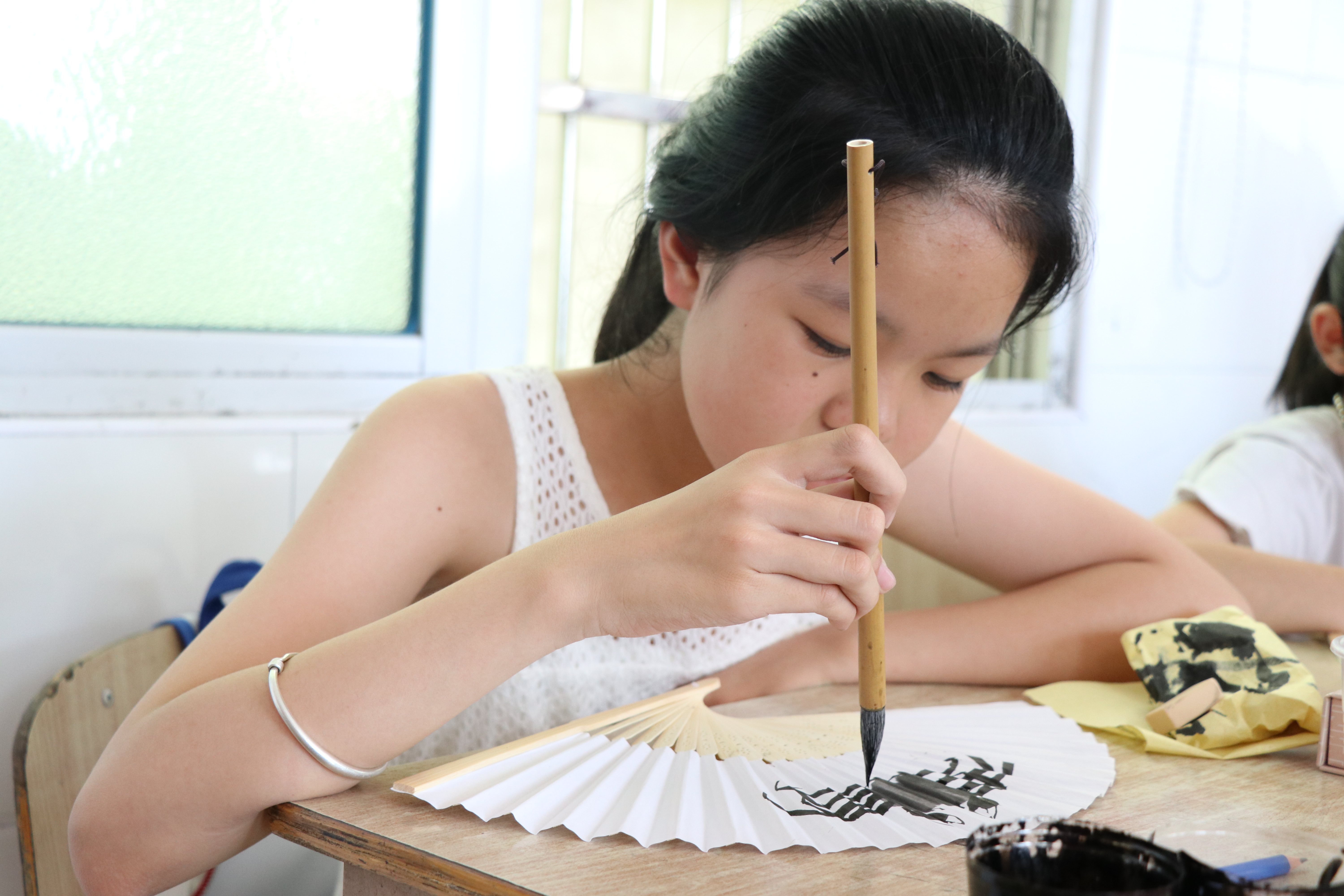 早上第一节课是朗诵课,绘暖向南实践队里正好有三位队员是来自于性爱视频 校院主持队。孩子们都是很优秀的可塑之才,在经过短短的讲解示范教学后,便已经读得有模有样了。我们请了好几位小朋友起来朗读,他们也配合积极,毫不吝啬地展现着自己。朗诵课后是书法课,由于孩子们年级段不同,所以特意安排了软笔书法与硬笔书法。低年级段孩子学硬笔书法,高年级段孩子学软笔书法。孩子们纷纷表示这是他们第一次尝试书法。我们告诉他们何事都有第一次,要勇于尝试。而他们的第一次书法也完成非常不错。从姿势到写字,都有模有样。而今日下午的扇上绘画是今日的重头戏,第一次的集体大活动,我们再一次把高低年级的小孩子聚集在一个教室里,像第一天他们刚来这里的时候一样,只是与第一天的不一样的是,孩子们和我们变得越来越熟悉了,脸上的笑容愈加灿烂。我们为他们准备好了扇子与画笔,让孩子们发挥想象在扇上绘画,孩子们一开始都不知道该如何下手,但是在最后他们给了我们大大的惊喜,每个人都在纸上表达了自己的奇思妙想,孩子们纯真的天马行空,绘画不失为一种完美的表达方式,这也启发了已经步入大学的我们。有时候天真无邪确实是弥足珍贵的。孩子们眼里的世界是五彩斑斓的,是一切皆有可能的。所以说保持初心是多么的重要。在这样的思考中,我们结束了今日的所有活动。