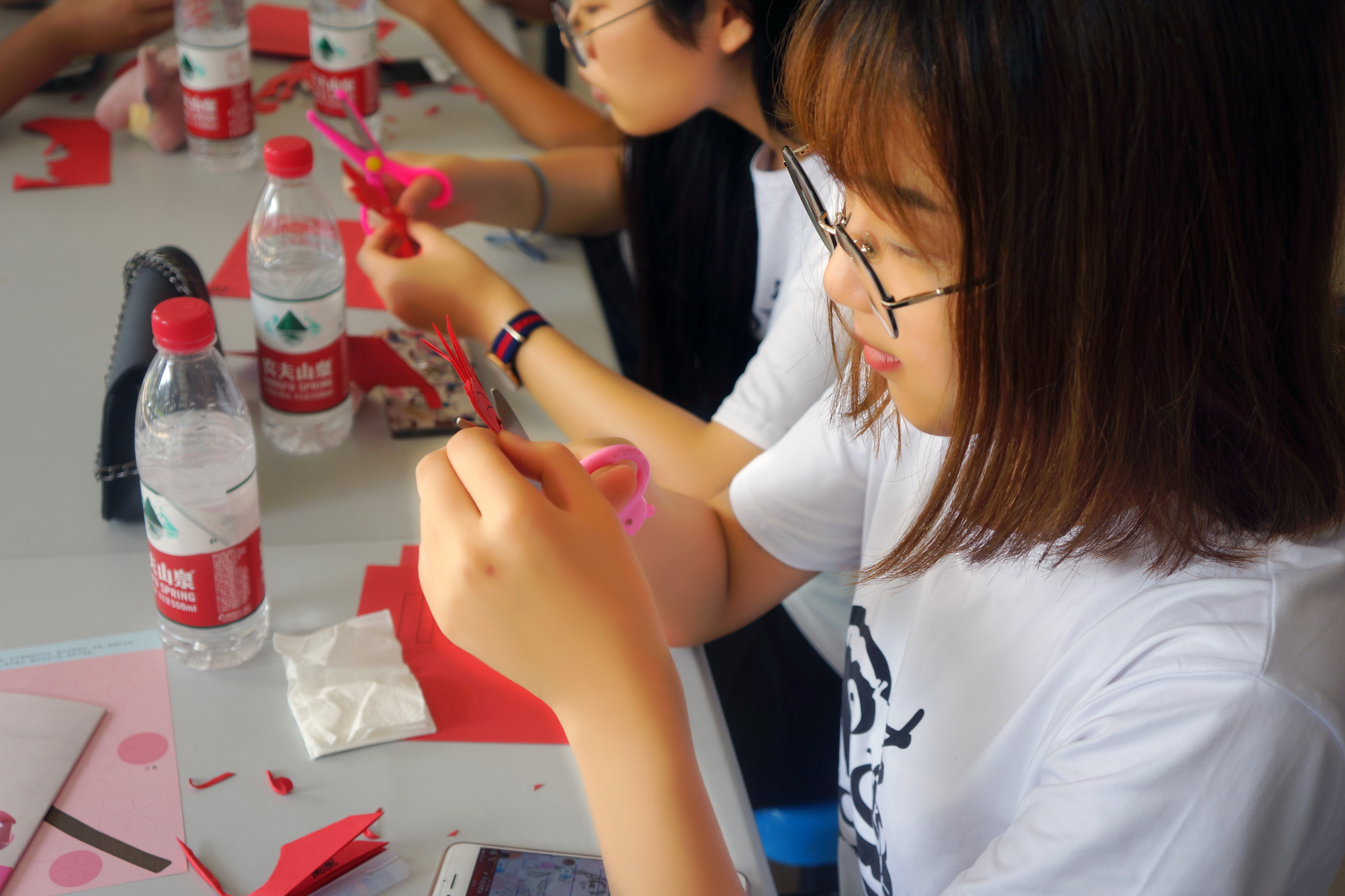 2018年7月27日,性爱视频 “艺韵晚霞”暑期实践队前往性爱视频 超豪学区食堂一楼,进行了以“艺韵之剪纸艺术”为主题的实践活动。