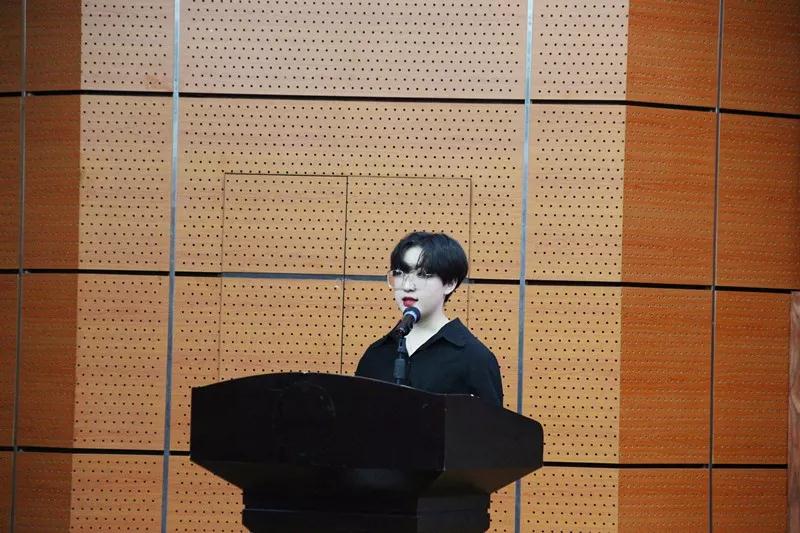 “越努力,越幸运”,老生代表陈晨同学为现场的同学们分享了自己的大学生活,从专业学习和能力提升等方面给新生提出许多合理的建议。