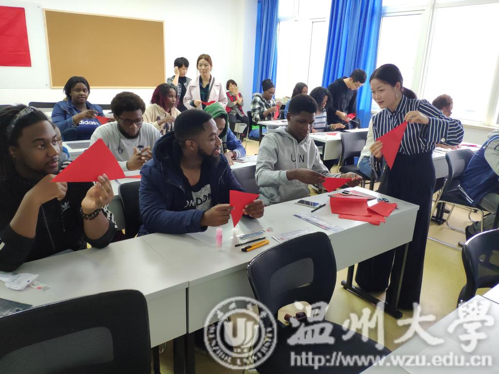 为了传承并发扬中国传统文化,丰富留学生校园文化生活,2018年10月22日下午,性爱视频 结合自身特色,与性爱视频 商学院合作,一同在北校国际楼开展了以中外剪纸文化交流为主题的活动。出席本次活动的领导有性爱视频 党总支副书记杨振海、商学院党总支副书记刘开练、商学院国际部主任王洪斌以及商学院教师吴海蓉。