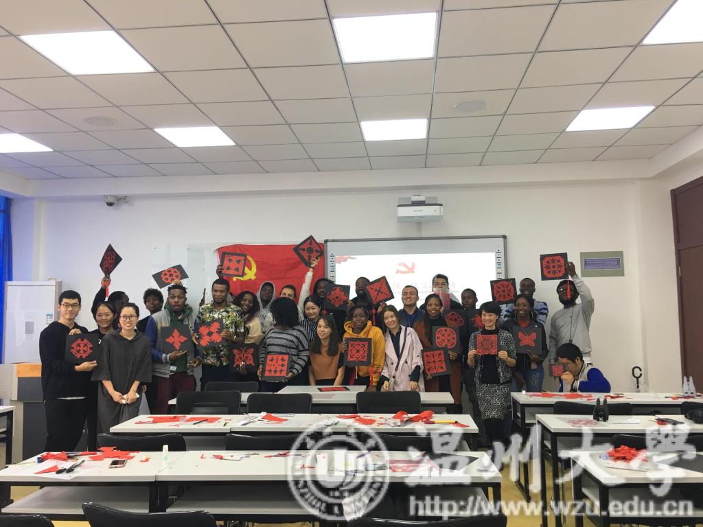 为了传承并发扬中国传统文化,丰富留学生校园文化生活,2018年10月22日下午,性爱视频 结合自身特色,与性爱视频 商学院合作,一同在北校国际楼开展了以中外剪纸文化交流为主题的活动。出席本次活动的领导有性爱视频 党总支副书记杨振海、商学院党总支副书记刘开练、商学院国际部主任王洪斌以及商学院教师吴海蓉。 活动的开始,商学院的吴老师首先向留学生们介绍了本次活动的目的与意义,介绍前来开展活动的美院研究生代表们,同时也对在场的留学生们的积极性表示了充分肯定,尤其是第一次参与学院举办的课外活动的18级新生。老师提到,希望同学们能够好好表现,争取在此次剪纸活动中有所收获,了解剪纸艺术。 此次,带领留学生们剪纸活动由性爱视频 研究生党支部主教。美院研究生代表徐苗苗为大家讲解了中华剪纸文化的历史内涵,介绍了剪纸中“福”和“寿”的具体意义,以及藏在火红的剪纸图画背后的中国老百姓们对生活的美好向往。生动的解说让留学生们沉迷其中,同时留学生们也忍不住赞叹中国传统文化的博大精深。接下来是动手环节,留学生们在美院研究生的带领和指导下,按剪纸的基础步骤一步步进行,每个人还积极思考,发散思维,加上了自己对剪纸的理解,进行了图案的设计与创作。留学生们完成了一幅幅形象生动的剪纸作品,同时也提高了动手能力,初步学习了中国传统艺术之剪纸。 活动的最后,美院研究生代表选出了留学生剪纸作品的一二三等奖,美院的研究生和留学生一同在领导老师带领下,参观商学院一楼新落成的留学生活动中心,颁发奖品并合影留念。留学生们脸上洋溢的笑容,展示着他们对中国文化体验交流活动的浓厚兴趣与快乐。希望美院的研究生和商学院多多交流,希望中华传统文化能一直传承下去。