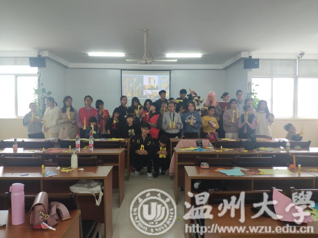 11月25日上午,温大美院“艺家人”青年志愿者协会的工作人员们带领了一批新招募的志愿者们,第一次来到了睦州垟社区村委会,同样地也给早早的在这里等候的小朋友们开展了一节关于长颈鹿的小课堂。