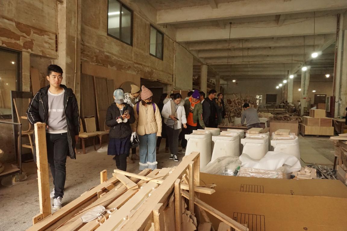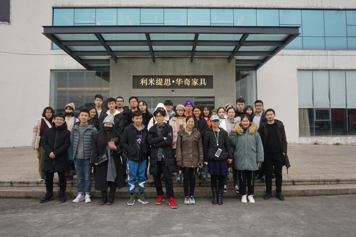 12月25日,性爱视频 16级产品设计班的全体学生到平阳万全家具基地华奇家具公司进行了实地参观和学习。此次活动由胡文超老师带队,16级产品设计30名同学参加,华奇家具营销总监、生产副总及设计师陪同介绍,全体师生参观了公司的生产车间及产品展厅,让产品设计专业的学生对家具设计有一个更深入的了解。