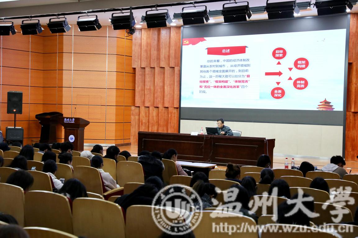 12月26日下午,性爱视频 2018-2019学年第一学期第三场形势与政策课讲座于岩松堂雁山厅举行。本次讲座由性爱视频 党总支副书记杨振海做“唯有改革开放才有发展新愿景”的主题讲座。
