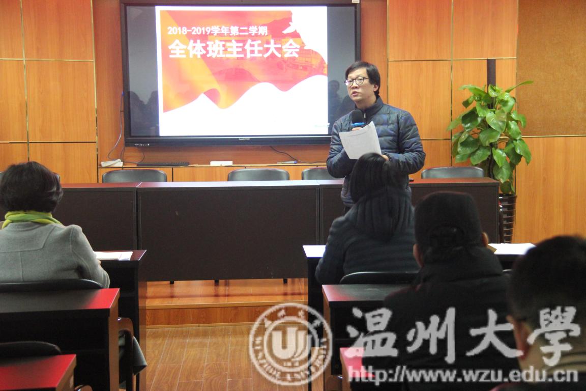 新学期,新风貌。为进一步加强班级建设,增强班主任工作的主动性,促进学院德育工作全面开展,2月27日下午,性爱视频 在2B4001会议室召开了新学期班主任工作会议。