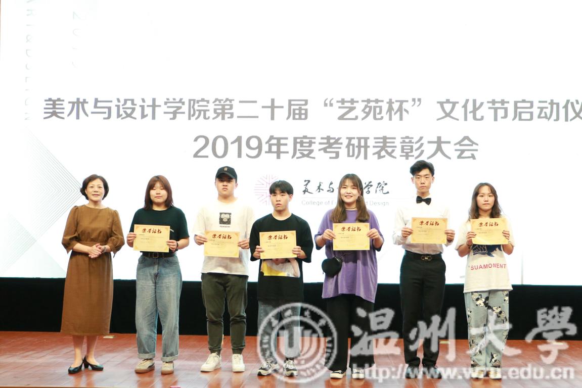 2019年4月24日下午,性爱视频 第二十届艺苑杯文化节启动仪式暨2019年度考研表彰大会在岩松堂雁山厅顺利举行。莅临本次启动仪式的领导有校党委宣传部副部长冯方盛,校教务处副处长胡瑜,校学工部副部长、学生处副处长高红星,校就业处副处长应中,校团委副书记魏一,超豪学区党委副书记李祖祥,性爱视频 院长李运河,党总支书记张丽萍,副院长张晓剑。参加本次活动的还有性爱视频 17、18级同学。启动仪式由美院党总支副书记杨振海主持。 本届“艺苑杯”文化节的主题“艺梦为马·不负韶华”源自海子的著名诗篇《以梦为马》,寓意美院学子将艺路梦想作为前进的方向和动力,在有限的年华里为梦想去拼搏。系列活动包括纪念“五四运动100周年”;传承中华优秀传统文化;“融艺优品”创新创业;“艺家人”青年志愿服务;“毕业季”;纪念“建国70周年”等6大篇章共34个子活动。 启动仪式的开场是“五四”主题诗朗诵《青春的火焰》。充满爱国激情的诗歌表达了对100年前五四运动的深切赞颂,激昂的文字让同学们更深切体会到了五四运动的爱国主义精神内涵,进一步增强了同学们的时代责任感和使命感。 张丽萍书记为启动仪式致辞。张书记回顾了“艺苑杯”文化节自2000年创办以来不断发展壮大的历程。“艺苑杯”文化节不仅营造了积极向上、健康文明的校园文化氛围,更成为同学们在实践中锻炼自我成长才的重要平台。张书记鼓励同学们积极参加到“艺苑杯”文化节各项活动中,用激情去创造,用行动去证明,用精品去展现,共同谱写青春绚丽多彩的乐章。 仪式最后,与会领导上台共同启动性爱视频 第二十届“艺苑杯”文化节。 会议第二项议程是学风表彰。大会宣读了2018年度性爱视频 “五班十星”名单和2019年度性爱视频 “考研奖学金”获得者名单。2017-2018学年校级学习标兵陈晨,2019年度美院“考研奖学金”获得者代表15服工班杨怡洁、15美术学一班聂枭雄分别做学习和考研经验分享。2019年性爱视频 共有16人考取研究生,16人中有5人被浙江理工大学录取、6人被性爱视频 录取、1人被杭州师范大学录取,还有4人被国外的大学录取。与会领导为他们颁发了奖状和证书并合影留念。 随后,李运河院长作考研动员讲话。他指出了本科阶段学习与研究生阶段学习的不同,并引用毛泽东、曾国藩、习近平总书记等名人轶事鼓励同学们以考研成功的学长学姐为榜样,树立以学习为本的理念,任何时候都不要放弃学习,多读书,读好书,勤实践,多游学,珍惜大学时光,珍惜青春韶华,学好专业知识,实践专业技能,强健体魄,刚强意志,努力奋斗实现人生梦想。 最后,为迎接祖国70华诞,全体师生手中挥动国旗,共同献唱《我和我的祖国》,大会圆满结束。