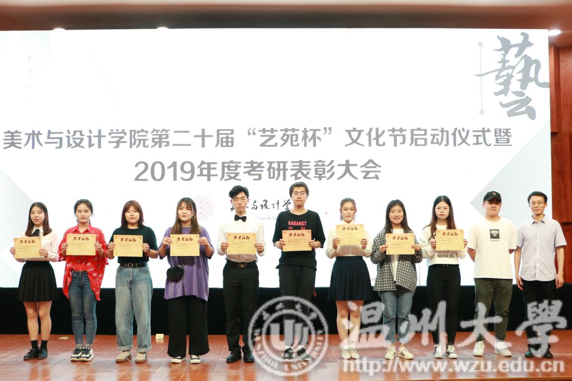2019年4月24日下午,性爱视频 第二十届艺苑杯文化节启动仪式暨2019年度考研表彰大会在岩松堂雁山厅顺利举行。莅临本次启动仪式的领导有校党委宣传部副部长冯方盛,校教务处副处长胡瑜,校学工部副部长、学生处副处长高红星,校就业处副处长应中,校团委副书记魏一,超豪学区党委副书记李祖祥,性爱视频 院长李运河,党总支书记张丽萍,副院长张晓剑。参加本次活动的还有性爱视频 17、18级同学。启动仪式由美院党总支副书记杨振海主持。
