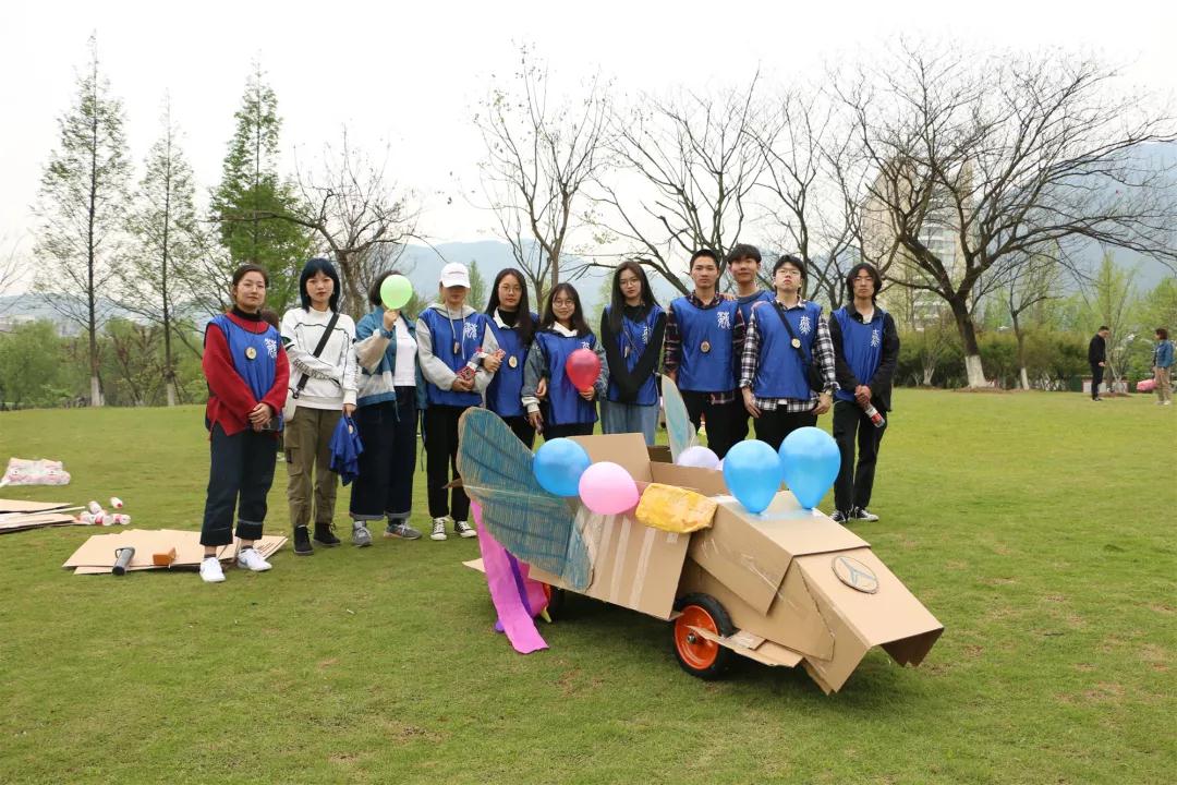 4月14日,2018-2019学年第二学期第二次团干培训在大学生活动中心如期举行。本次培训以户外素拓形式开展。 活动第一项是“穿越火线”,每组十一个成员,两个甩绳,剩下九个成员需要依次不间断的穿越长绳,并在最后手拉手一起穿过。比赛第一名的队伍能在最后造车环节中得到更多的材料。起初,干事们在面对无情的长绳时面露难色,但在队友的鼓励下,克服恐惧,摆起了阵型,当绳子甩到高点的时候一个接着一个的穿越,九人都穿过后再排成一字形队伍倒数三二一同时穿越长绳,完成了挑战。第一名更是取得了13秒的好成绩。这个项目让干事们能够充分信任队友,获得勇往直前的动力。 接着干事们开始了最终大比拼——造车。首先要确定每个队的驾驶员、车模、讲解师。一开始干事们显得有点手足无措,无从下手,但在每个队队长的指挥下慢慢的步入了正轨,干事们分工明确,有条不紊,一部分人做车底座,另一部分人做车身。 经过两个多小时的制作,在拼拼合合、缝缝补补中三个队的车子都顺利完成了,每个队的车子都各具特色,外观绚丽的同时又十分牢固。最后三队分别介绍了自己的车子并经过竞速抉择出第一名。都说团结力量大,干事们在此次活动中深深的体会到了这点。 尽管过程很辛苦,但却十分有意义,干事们在游戏中学会团结,学会分工,学会信任;收获快乐,收获友谊,收获阅历。希望在之后的日子里干事们也能秉承活动的精神,勇往直前,成长的路上势如破竹,乘风破浪。