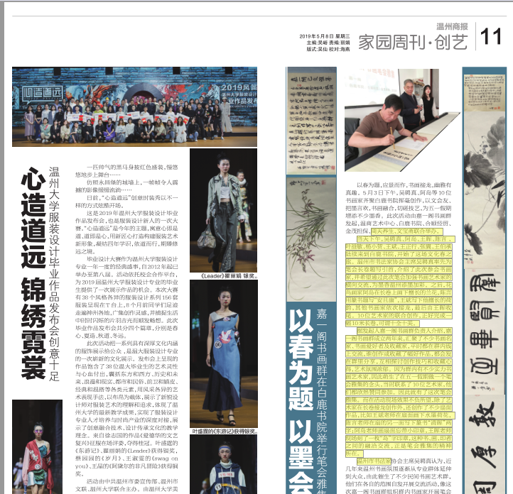 活动由中共温州市委宣传部、温州市文联、性爱视频 联合主办。由性爱视频 、浙江风笛服饰有限公司、温州时尚学院合作承办。商报记者郑丽娟