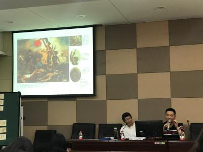 随后在温州艺术学校的16级实习生给我们带来了关于巴黎卢浮宫的课程。课程开始介绍了巴黎卢浮宫的历史和大致构造,然后向学生介绍了其中最具代表性的维纳斯、胜利女神、蒙娜丽莎,并带着同学欣赏这卢浮宫三宝。