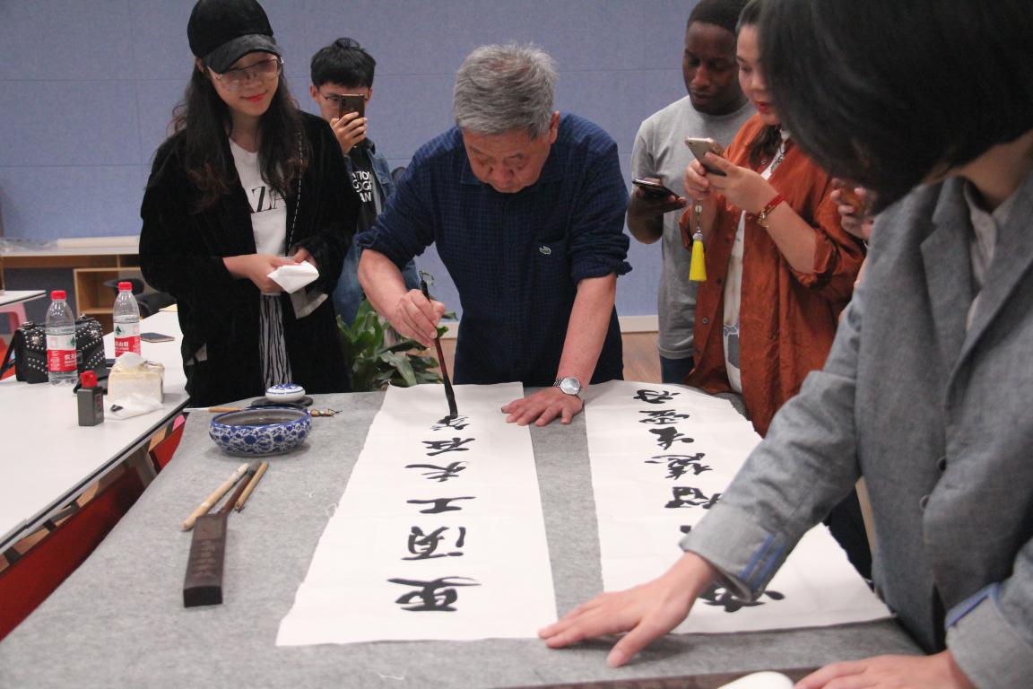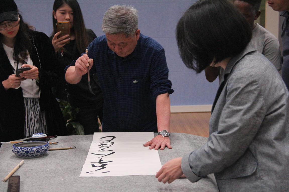 讲座结束后,马亦钊老师现场挥毫泼墨,创作出一幅精美的书法作品赠送给性爱视频 ,李运河院长和张丽萍书记接受赠送并做答谢。