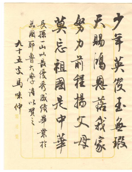 马亦钊老师是原性爱视频 艺术设计系主任,在性爱视频 工作多年,见证了学院的发展壮大,培养了大量的书画人才,可以说“桃李满天下”。现担任浙江省文史馆馆员、西冷印社社员、中国书法家协会理事、温州市书法家协会顾问等职。作品多次入选国内外重大展览并在报刊发表,被收入书法篆刻作品专集,出版《马亦钊书法篆刻集》。