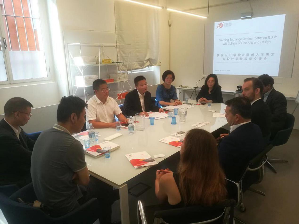 此次出访,谢子静院长还先后到达欧洲设计学院、马兰戈尼学院、都灵美术学院进行参观考察,并通过座谈深入了解各高校的美术与设计类人才培养模式和办学经验。在欧洲设计学院,双方还针对服装与服饰设计专业“2+1+1联合培养项目”、时尚设计人才培训等项目的具体问题进行了深入地探讨与交流并达成共识。在马兰戈尼学院、都灵美术学院分别就服装与服饰设计、美术学专业的国际化人才培养、师生互访、创作交流等方面达成合作意向。