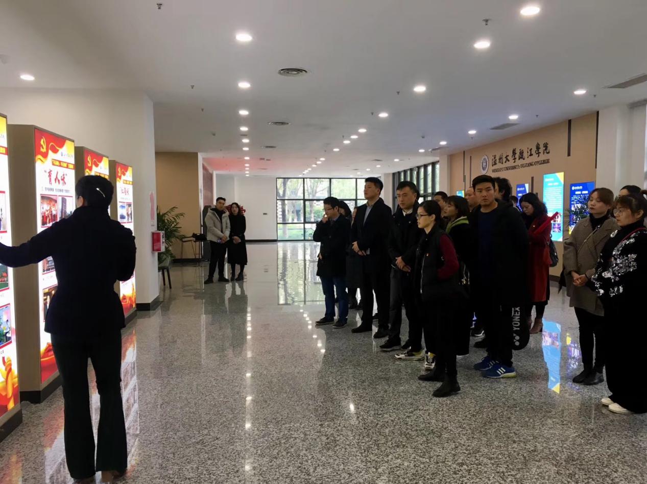活动第一项内容,参观性爱视频 瓯江学院“瓯江红”党员之家,依次参观了党史学习区、党建教育区、以及党建成果区域,瓯江学院组织部张青青老师细心地向各位党员介绍分享了瓯江学院党建工作的特色做法和多项成果,党员们纷纷赞叹、启发良多。