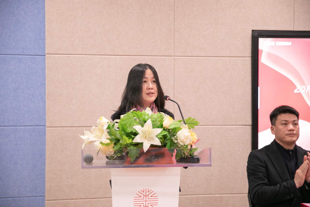 获奖学生代表李树朋发言,他向中国皮革协会表示了衷心的感谢,并表达了要在学习路上不畏困难,坚持梦想,用自己的能力回报母校,贡献行业,将温大文化不断传承与发扬。