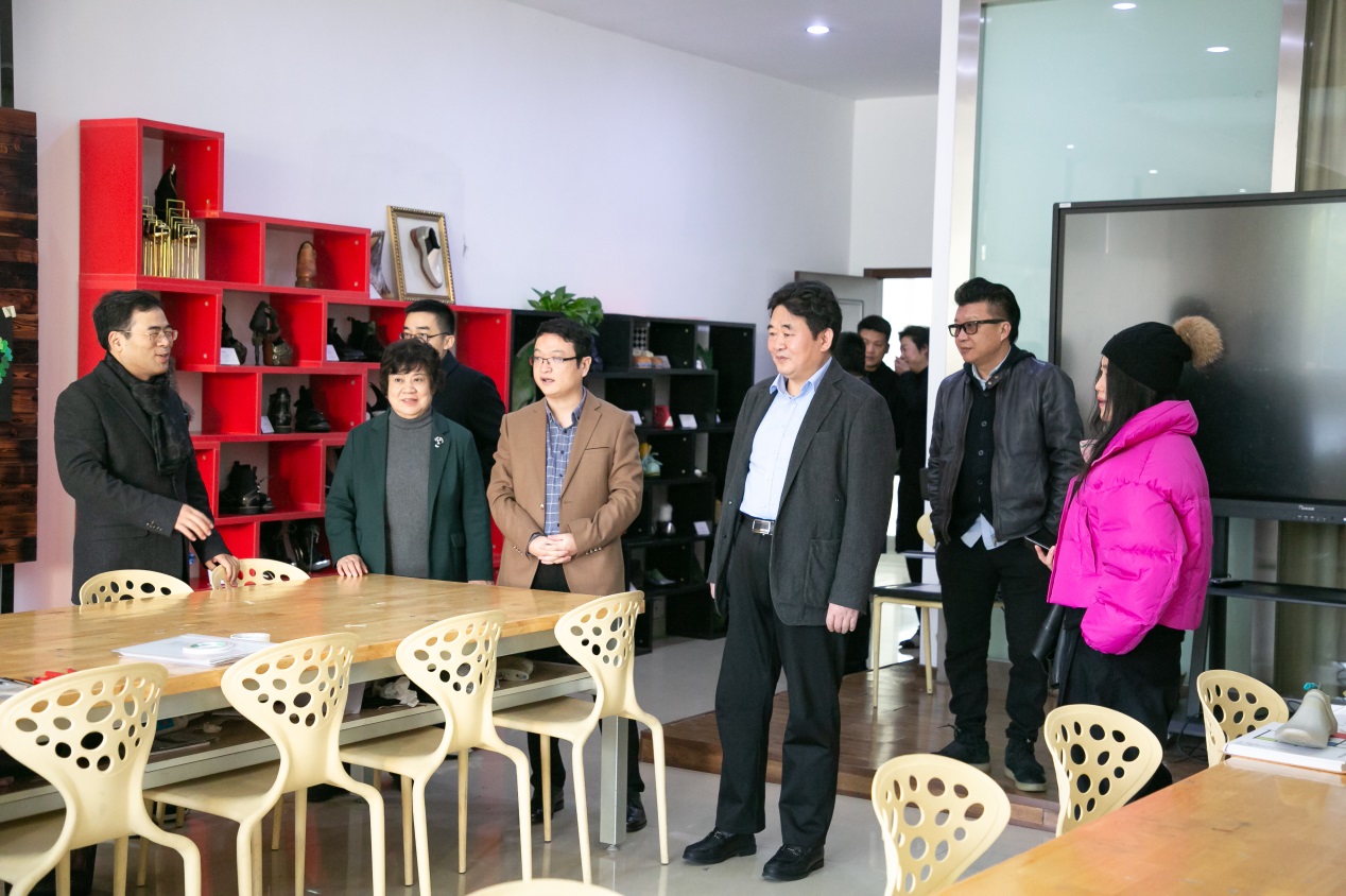 仪式开始前,李玉中理事长一行参观了鞋履与饰品设计专业设计工作室和实训中心,详细了解了鞋履专业与温州本土鞋企、科研院所开展深度联动,并将真实设计项目引进课堂,开展项目教学的情况,对性爱视频 高度重视产教融合、设计创作,为地方经济文化发展做出的积极努力和重要贡献表示赞赏。