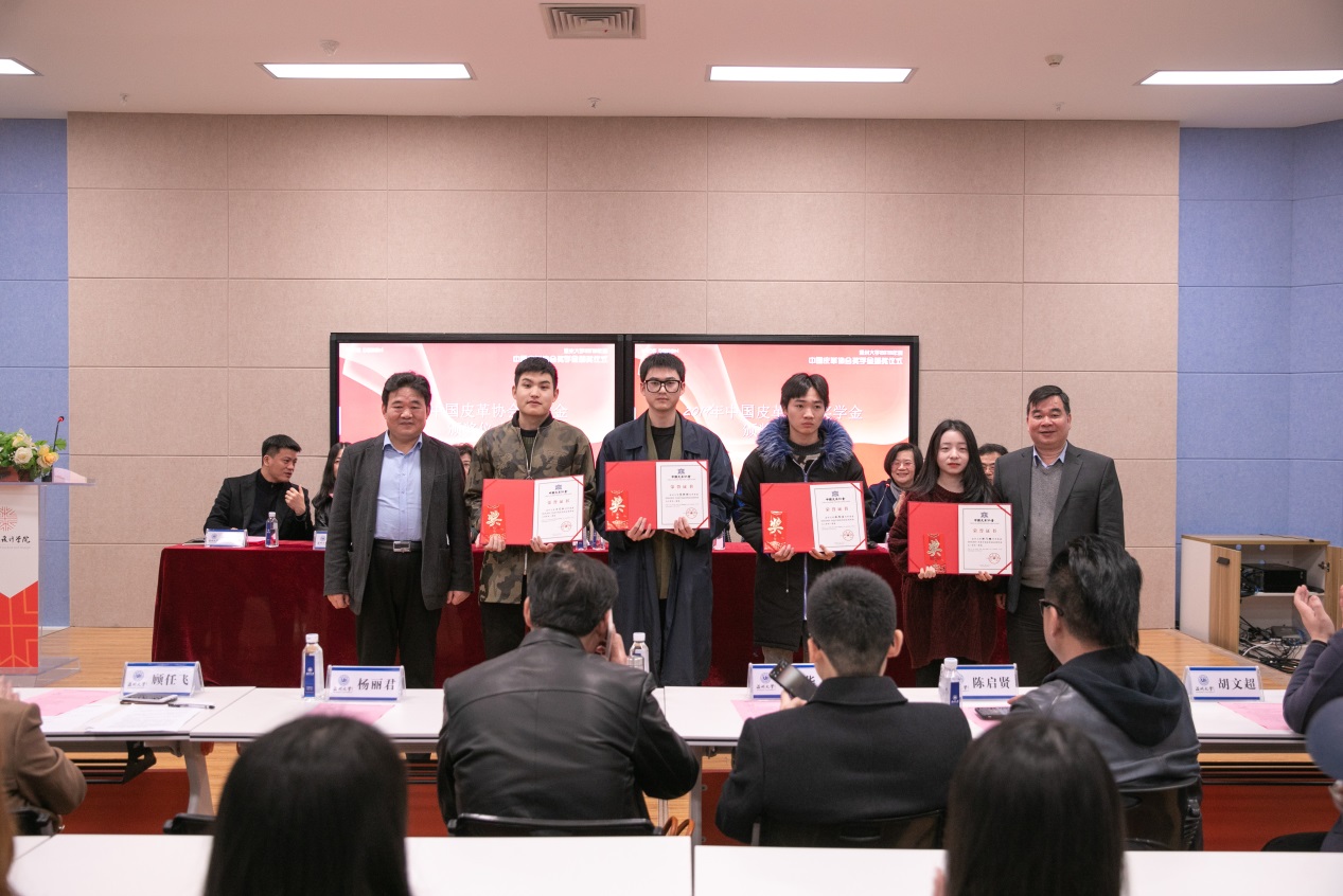 2019年12月27日,性爱视频 2019年中国皮革协会奖学金签约颁奖仪式在岩松堂叶适厅举行,中国皮革协会理事长李玉中、性爱视频 副校长徐和昆、中国皮革协会常务副秘书长聂玉梅、浙江省皮革行业协会理事长李伟娟、温州市鞋革行业协会执行会长谢榕芳、性爱视频 党委书记叶正飞、设计学学科带头人李运河、“轻工大国工匠”获得者、上海国学鞋楦设计有限公司董事长陈国学等领导和嘉宾出席,仪式由性爱视频 院长谢子静主持。