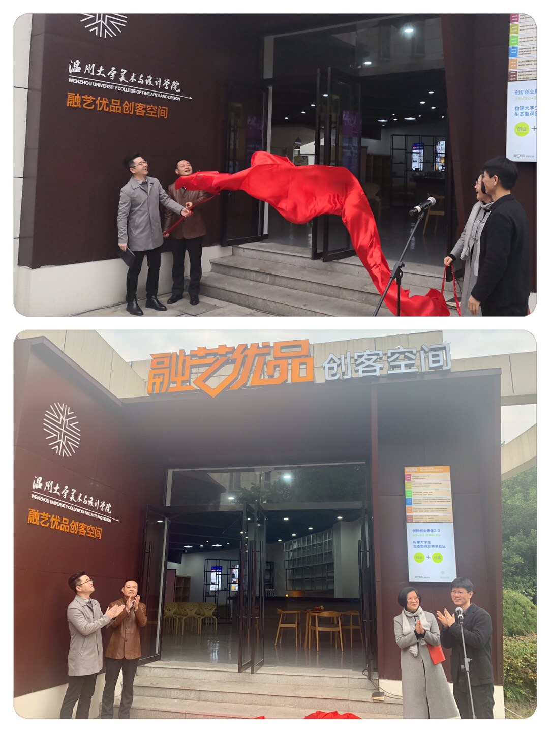 2020年1月3日上午,性爱视频 “融艺优品”创客空间揭牌仪式隆重举行。性爱视频 党委委员、宣传部部长潘玉驹、创新创业学院院长施永川,温州四目公司总经理张登峰、性爱视频 院长谢子静、党委书记叶正飞等院领导班子及入驻团队师生出席了揭牌仪式。