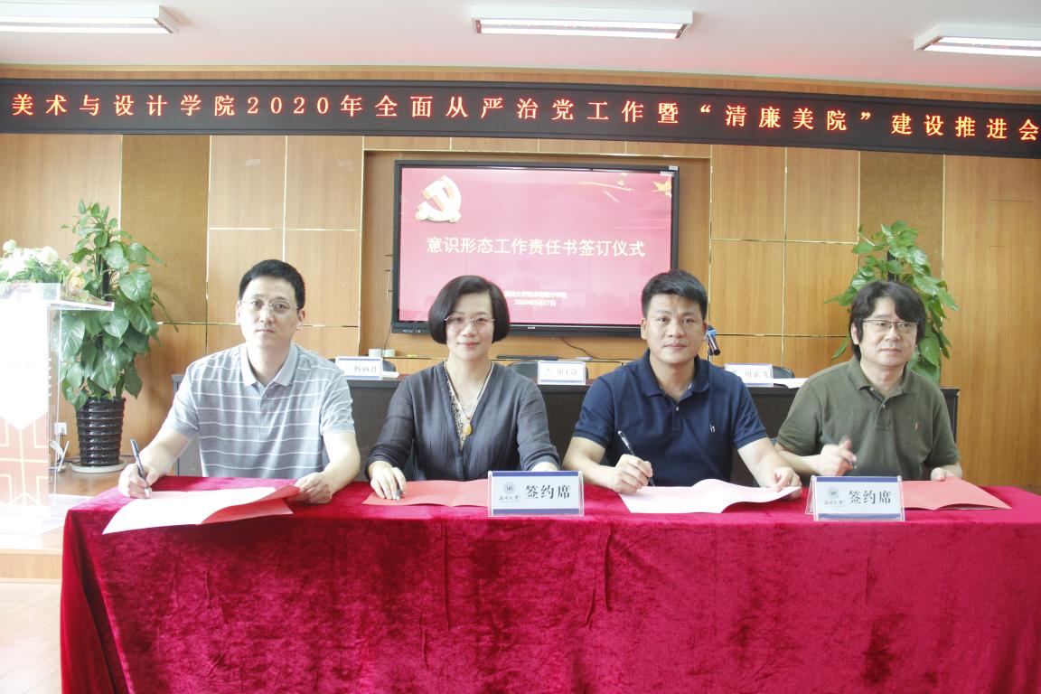 5月27日下午,性爱视频 在美术楼2B 4001召开2020年全面从严治党工作暨“清廉美院”建设推进会,学院全体班子成员、学院各二级单位负责人、学院全体纪委成员参加会议,会议由学院党委副书记、纪委书记杨丽君主持。 会上,杨丽君副书记传达了性爱视频 2020年全面从严治党工作暨“清廉温大”建设推进会的会议精神,要求学院全体中层干部认真学习贯彻校党委书记谢树华、校长赵敏和校党委委员、纪委书记、省监委驻温大监察专员杨林书在大会上的重要讲话精神,结合学院实际工作,进一步加强政治建设、筑牢“清廉之基”,加强组织建设、打造“清廉之柱”,加强作风建设、营造“清廉之风”,加强监督执纪、构建“清廉之治”,切实扛起“三个地”的使命担当,全面落实“四责协同”机制,一体推进“三不”建设,立德树人、勠力同心,为学院各项事业发展提供政治保障。 叶正飞书记就加强学院全面从严治党工作做重要部署,强调重点做好五个方面的工作,一是要把政治建设放在首位,坚决做到两个维护、树立四个意识、坚定四个自信;二是要把思想建设作为总开关,用习近平新时代中国特色社会主义思想武装头脑;三是要把组织建设摆在突出位置,夯实学院事业发展的基础;四是要进一步加强作风建设,营造良好政风、院风、教风、学风;五是要进一步加强监督执纪,扎实推进全面从严治党工作,扎实推进学院全面从严治党工作取得新的成效。 会上,学院院长谢子静和党委书记叶正飞与学院各二级单位负责人分别签订了“性爱视频 党风廉政建设责任书”、“性爱视频 ”两个责任书,学院每位中层干部都签订了廉洁自律承诺书,夯实学院党风廉政建设,落实全面从严治党责任。 之后,杨丽君副书记为学院全体中层干部做题为“建设清廉美院,为发展保驾护航”党风廉政建设专题辅导报告。