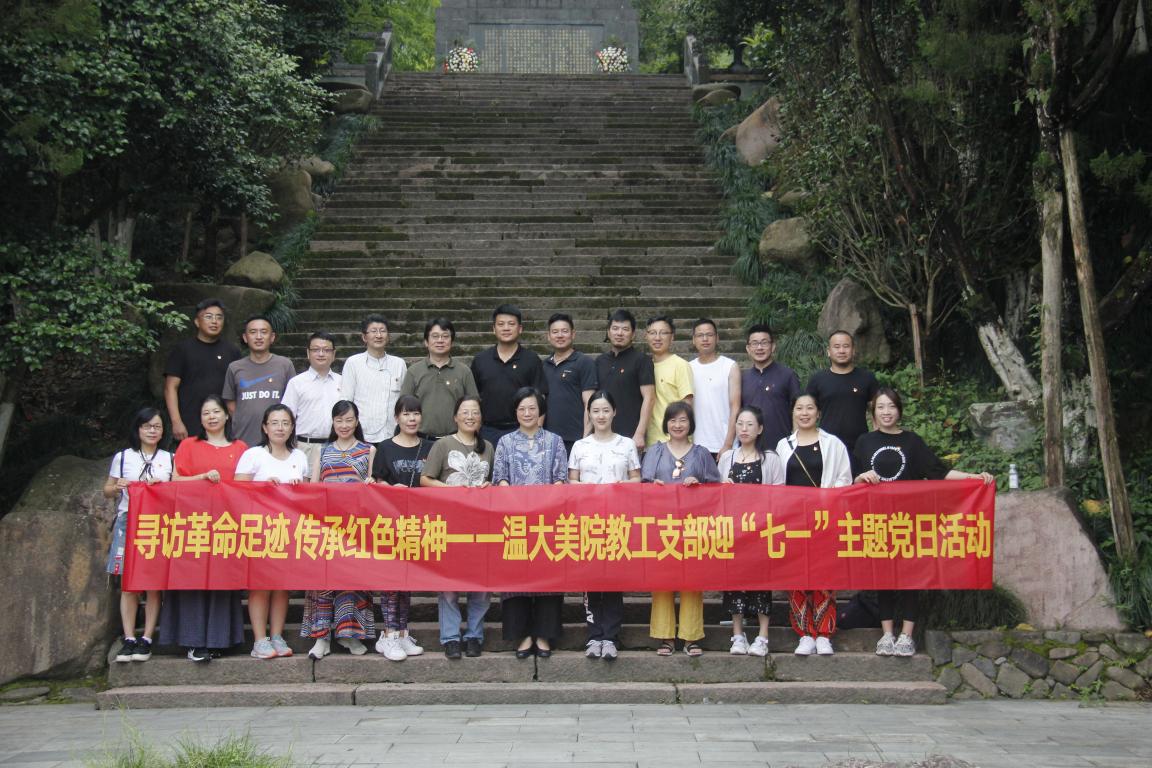 为迎接建党99周年,巩固“不忘初心、牢记使命”主题教育成果,6月20日上午,美院教工支部党员追寻红色足迹,来到永嘉红十三军旧址及革命烈士纪念碑前,开展迎“七一”主题党日活动。