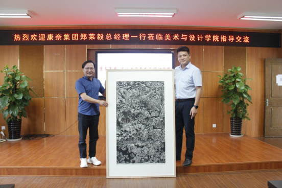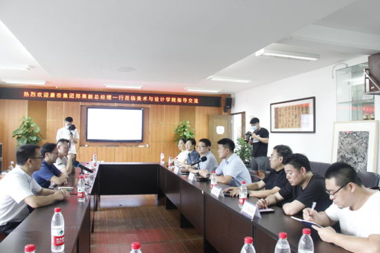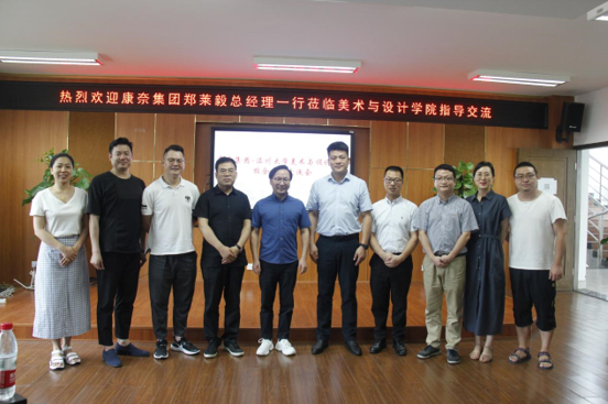 7月4日下午,康奈集团总经理郑莱毅、副总经理吴圣能及集团党委书记蔡发荣一行来性爱视频 交流座谈,学院党委书记叶正飞、副院长顾任飞、设计学学科带头人李运河及专业教师出席座谈会。