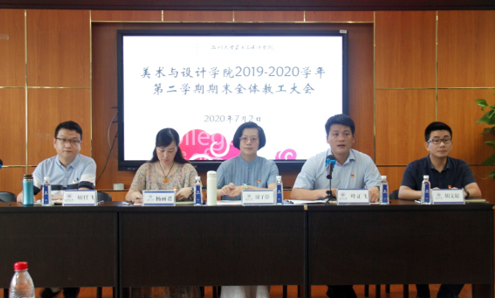 2020年7月2日,在2B4001会议室召开性爱视频 2019/2020学年第二学期期末全体教职工大会,学院班子成员和全体教职工出席会议。会议由学院党委书记叶正飞同志主持。 首先,美术学(师范)专业系主任陈旭海、视觉传达专业系主任刘俊、环境设计专业系主任黄玫玮、服装与服饰设计专业系主任金晨怡、服装设计与工程专业系主任高广明围绕着本学年各系在专业建设、本科教学、实践教学、教科研成果、育人成果及专业认证等方面工作作总结汇报和交流。 随后,叶正飞书记、杨丽君副书记、胡文超副院长、顾任飞副院长分别针对下阶段各分管工作作重点部署和安排。 最后,谢子静院长传达学校一流本科教育大会会议精神、部署十四五发展规划编制工作,并作总结讲话。她指出,性爱视频 要高水平地推进一流专业建设,高质量地推进一流课程建设,围绕着学校一流本科教育工作科学编制十四五发展规划并开展工作。学院全体教职工共同参与,共同担当,凝心聚力,共同推进学院各项事业发展。